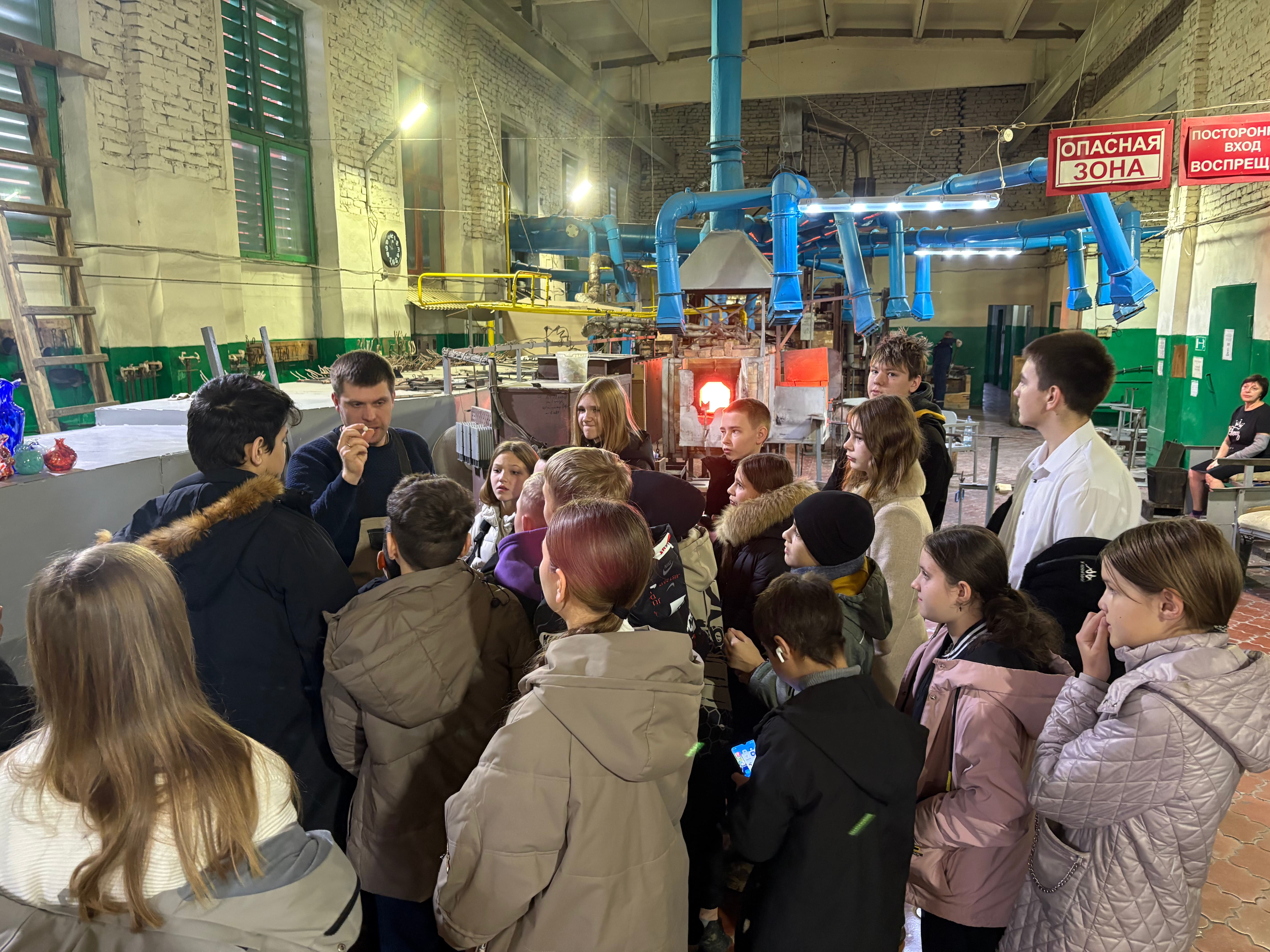 18 ноября 2025 года в рамках проекта «Билет в будущее» учащиеся 7 "Б" класса МБОУ СОШ №3 посетили предприятие «Стекло» ИП Косач И.А. Предприятие «Стекло» основано в 1998 году, специализируется на выпуске декоративных ваз, сувениров, а также на изделиях из цветного и бесцветного стекла. Вся продукция изготавливается вручную. Используется гутная техника выработки стекла: «человек – стекло – огонь». На предприятии были представлены стеклоизделия с ручной росписью. Для нанесения рисунка художники используют муфельные краски. Затем изделия обжигаются при температуре 550С. Краска спекается со стеклом и рисунок становится несмываемым и нестираемым. Так же возможна разрисовка ваз по эскизам с размещением небольшого текста, логотипа компании или бренда. Неотъемлемая часть производства «Стекло» - это сувениры. Сувениры как и другая продукция, изготавливаются из специальной стеклокрошки цветовая гамма которой более 8 цветов и их комбинаций. Цвет изделиям придается стеклянной крошкой, которая находится внутри стенок и никогда не теряет свой цвет.